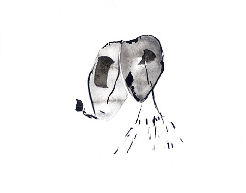 "Die Neugierde des Janus", Tusche, Aquarell auf Karton, 20 x 25 cm, 17.05.2004