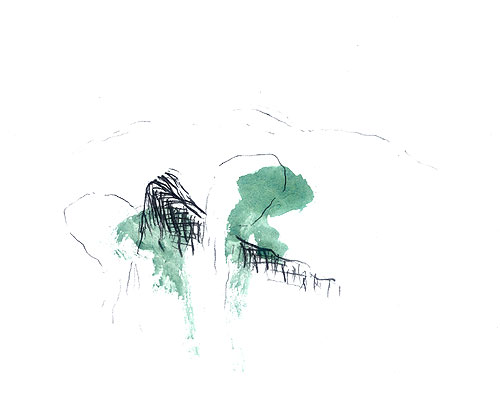 "Riss", Bleistift, Aquarell auf Karton, 20 x 25 cm, 04.05.2004